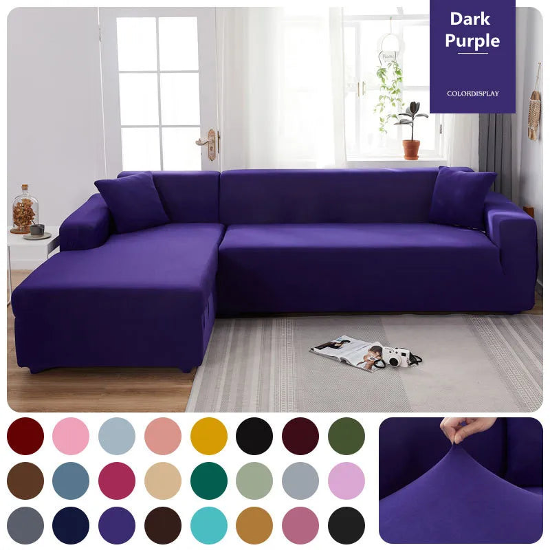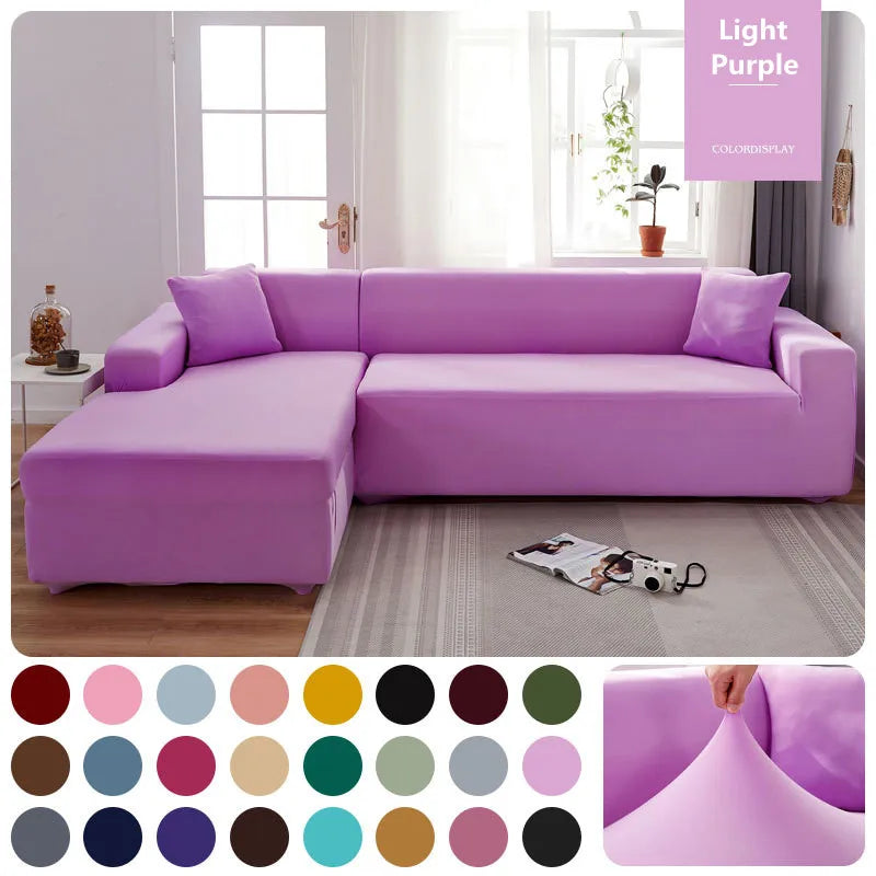 Solid Color Corner Sofa Cover Elastic Plain Couch Cover Stretch Slipcovers L Shape Sofa Need Buy 2pcs Sofa Cover