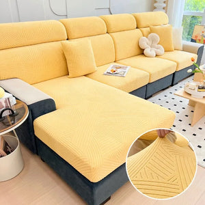 Protect and refresh your sofa with our Solid Jacquard Sofa Seat Cover. Made from thick, stretchable spandex material, it's perfect for homes, hotels, and pets. Easily slip on and enjoy a new look for your living room. Durable and snug, our sofa cushion cover is a must-have for any home.