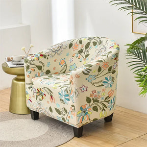 Spandex Club Tub Chair Cover Flower Print Club Armchair Slipcover Elastic Washable Seat Case Protector for Living Room Home Decor