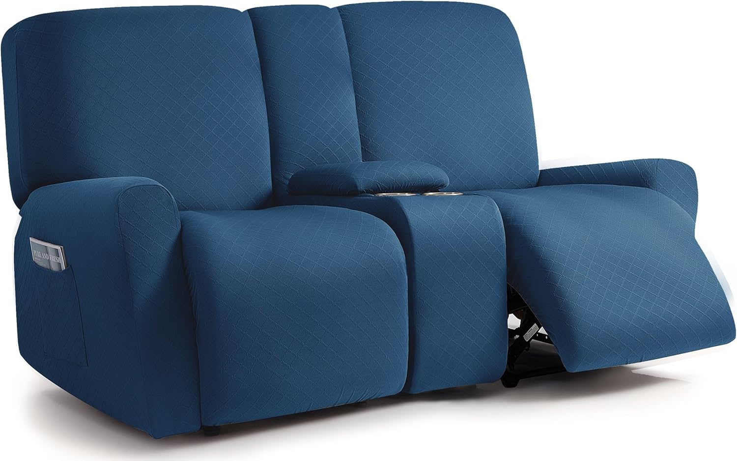 Protect your recliner sofa with our Squared Jacquard Design Recliner Sofa Covers. Made with stretch material, these slipcovers will fit most cushion reclining sofas and provide a snug, secure fit. The thick and soft fabric is both comfortable and protective, while also being easy to wash. Give your sofa a stylish upgrade and peace of mind with our reliable covers.