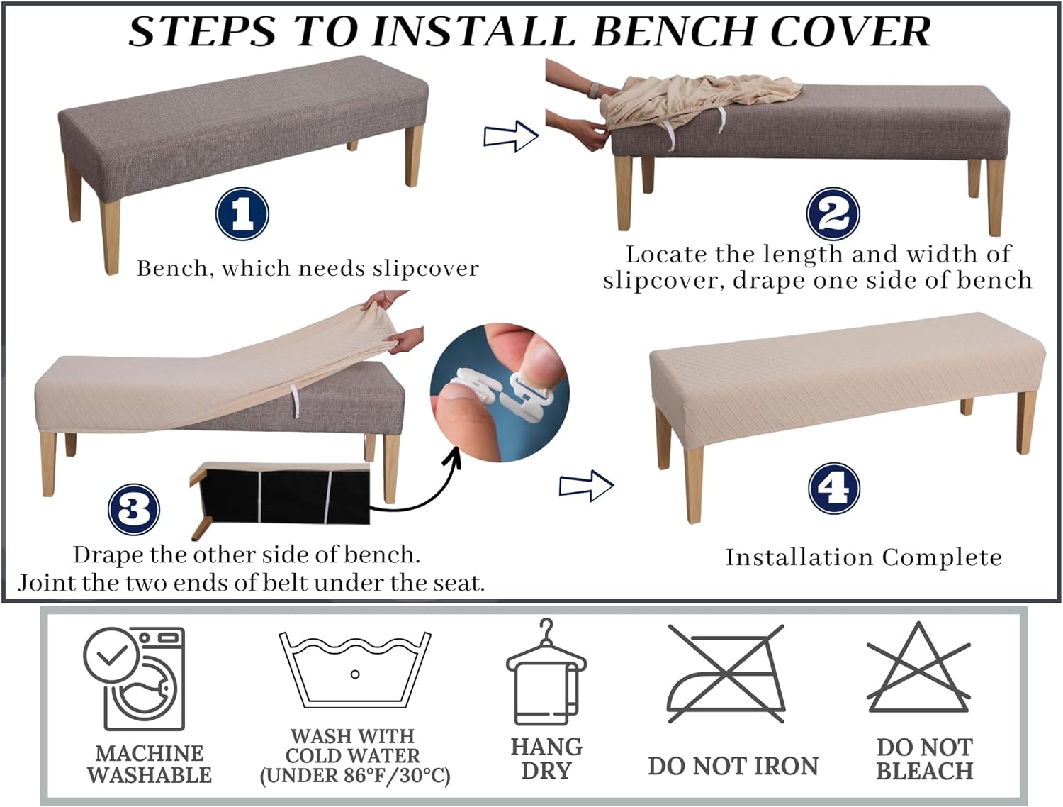 • High-Quality Bench Slipcover: Crafted from 92% polyester and 8% spandex, this bench cover is soft, comfortable and wrinkle-resistant. The stretchable material quickly recovers and fits securely with a sewn-in elastic belt. It's machine washable for easy cleaning.