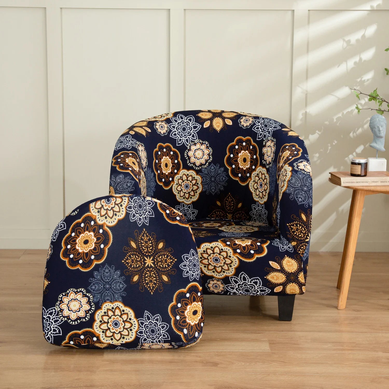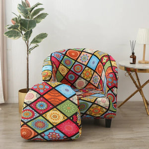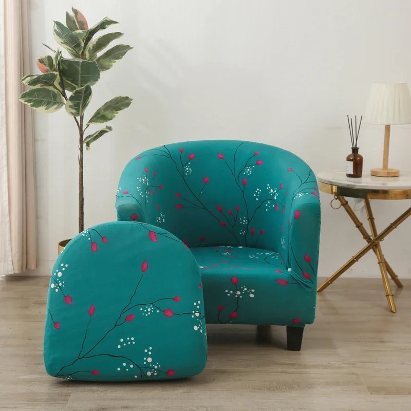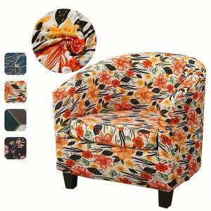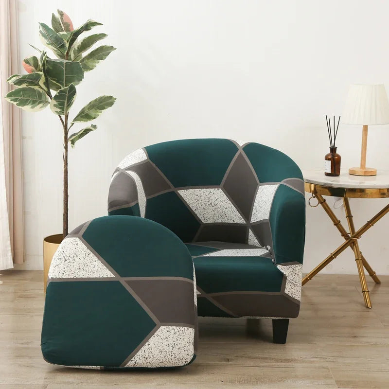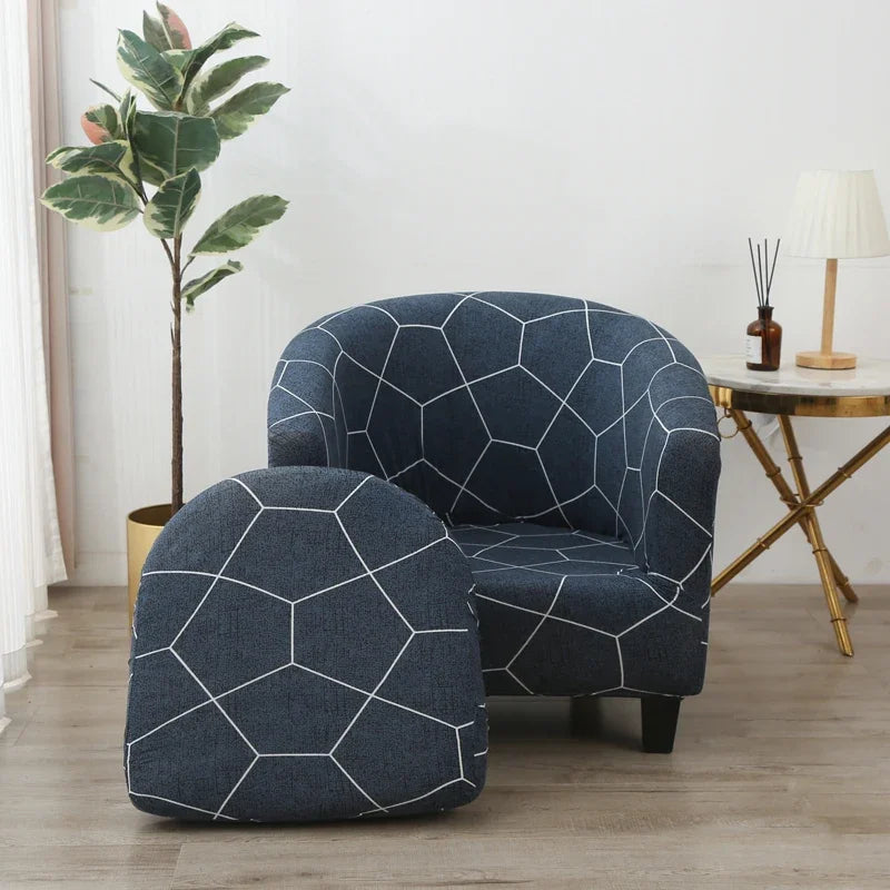 Stretch Club Chair Slipcover 2 Piece, Soft Removable Printed Tub Chair Slipcover, Non Slip Barrel Chair Slipcovers