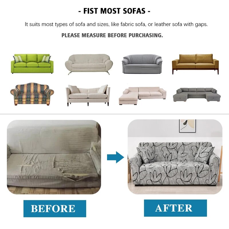 1. This sofa cover applicable to sofa which there is a gap,between seat with backrest and armrest.(Please make sure that your sofa has deep gap to slip the foam bars before purchase.Our sofa cover is not suitable for the sofa with shallow gap.)