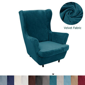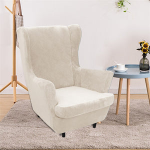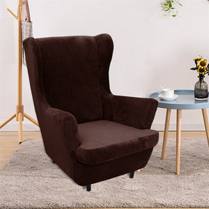 Super Soft Velvet Wing Chair Cover Stretch Armchair Covers Washable Removable Non Slip Sofa Slipcovers with Seat Cushion Cover