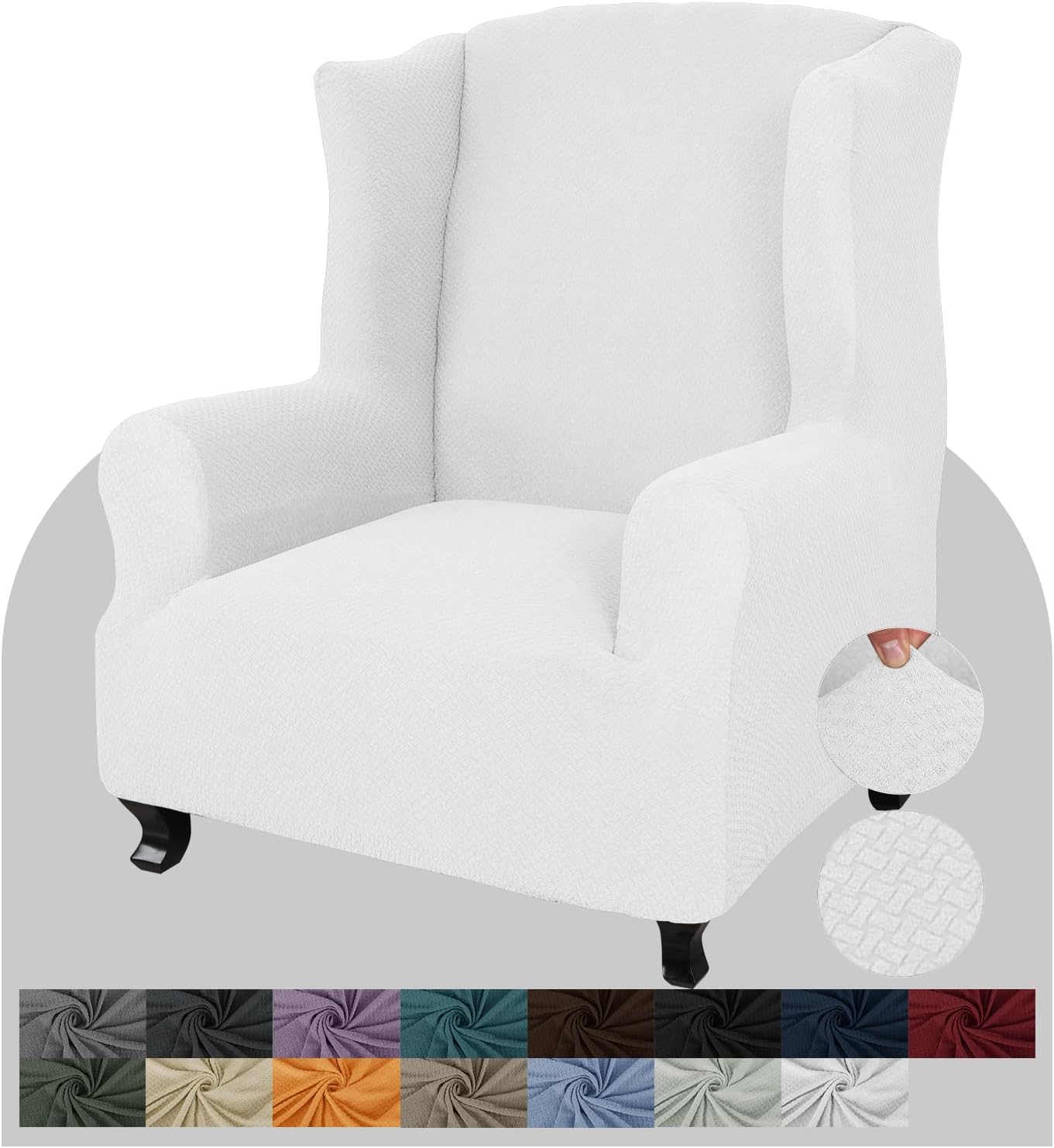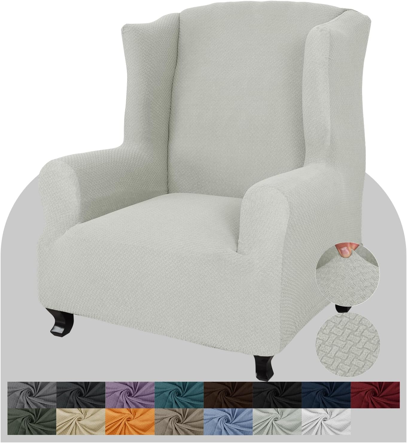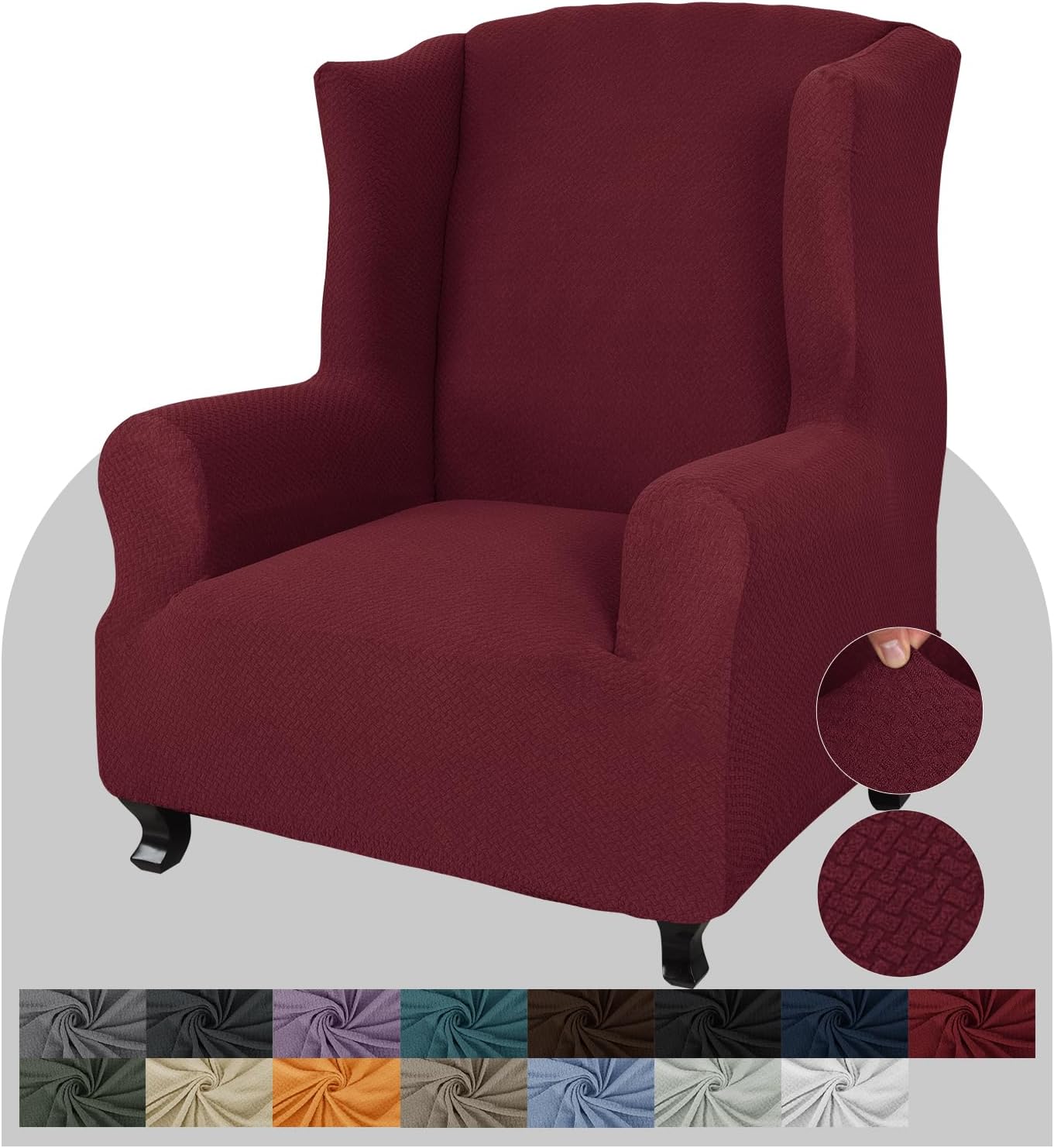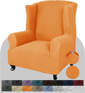 • UNIQUE PATTERN DESIGN: 85% polyester and 15% spandex. 1 piece wing chair slipcovers are made from polyester-spandex jacquard fabric with newest jacquard knitting pattern. The exquisite workmanship and thick fabric make the wing chair slipcover more soft to touch and durable enough to long time use. Using our wing chair slipcover can update the look of your wing chair instead of spending a fortune on reupholstering