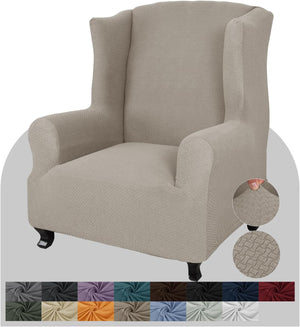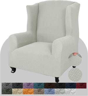 Super Stretch Wingback Chair Slipcover Soft Spandex Jacquard Wing Chair Cover Living Room Slipcovers for Wingback Chairs with Foam Rods