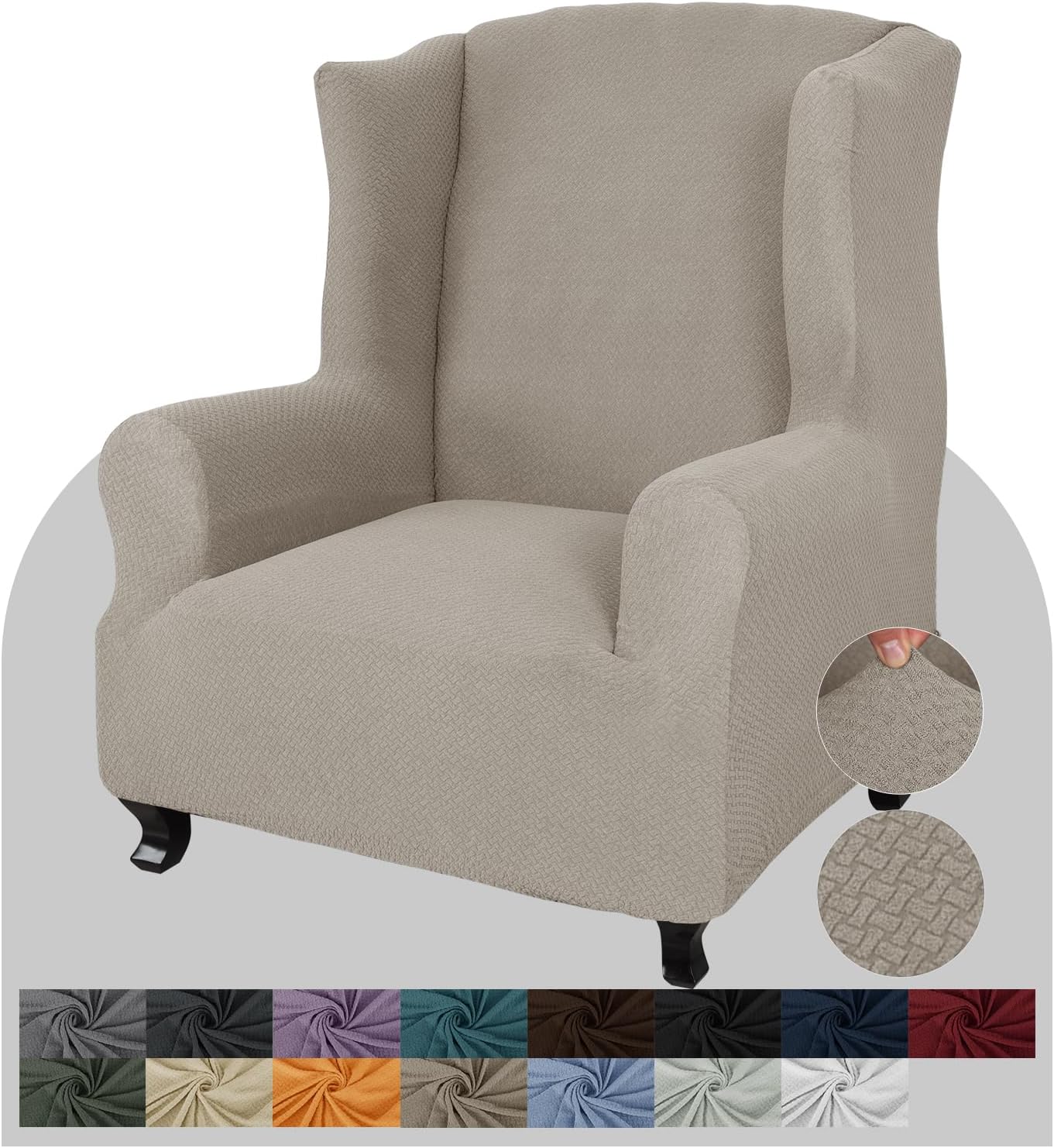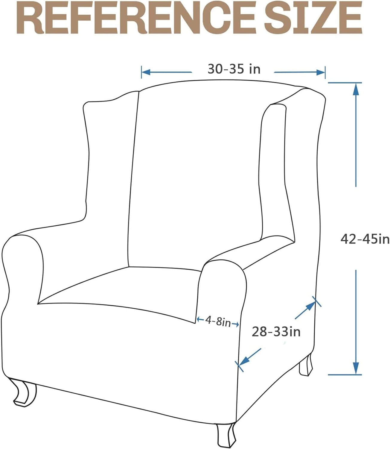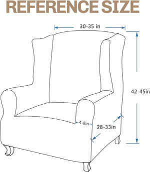 • SIZE & WARRANTY: fitted wing chair cover fits for most types of wing chairs. For good fit, please measure your chair size refer to the MEASURE ADVICE before purchasing. Our stretchy wing chair slipcover fits wing chair with length 28"-32", width 32"-36", height 37"-45". Due to the variety of light and monitor displays, the color may differ slightly from the image and product. If you have any questions before or after purchase, please contact us in any time