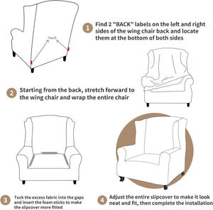 • INSTALLATION & CARE: The magical wing chair slipcovers are really effortless to put on and off. Referring to the Installation Guidance, you can finish installment in a short time by one person. The wing chair slipcovers are machine washable, for good and easy maintenance better wash at cold water or below 30 degrees Celsius. Please do not bleach and iron. Using mild laundry detergents and tumble dry low or lime up