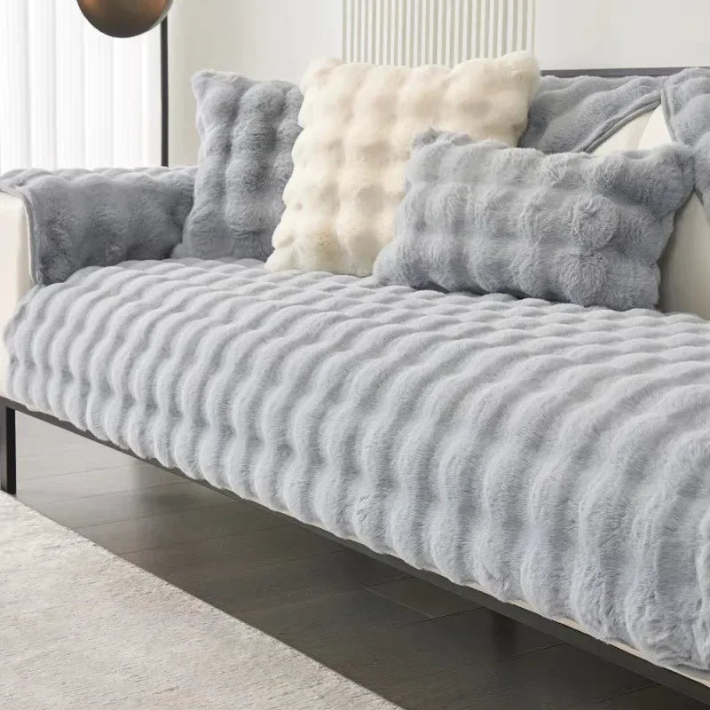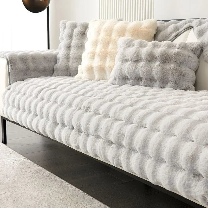 Thick Rabbit Plush Chaise Longue Anti Slip Sofa Mat Sofa Throw Cover 4seasons Universal Anti Slip Couch Cover Sofa Slipcover Living Room