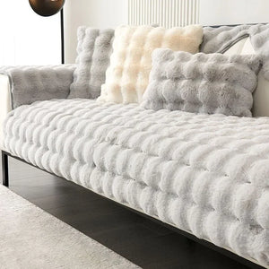 Protect and add a touch of plushness to your sofa with our Thick Rabbit Plush Chaise Longue Sofa Mat. This anti-slip cover is perfect for all seasons and will brighten up your living room. Its universal fit and soft material make it both practical and comfortable.
