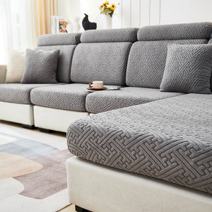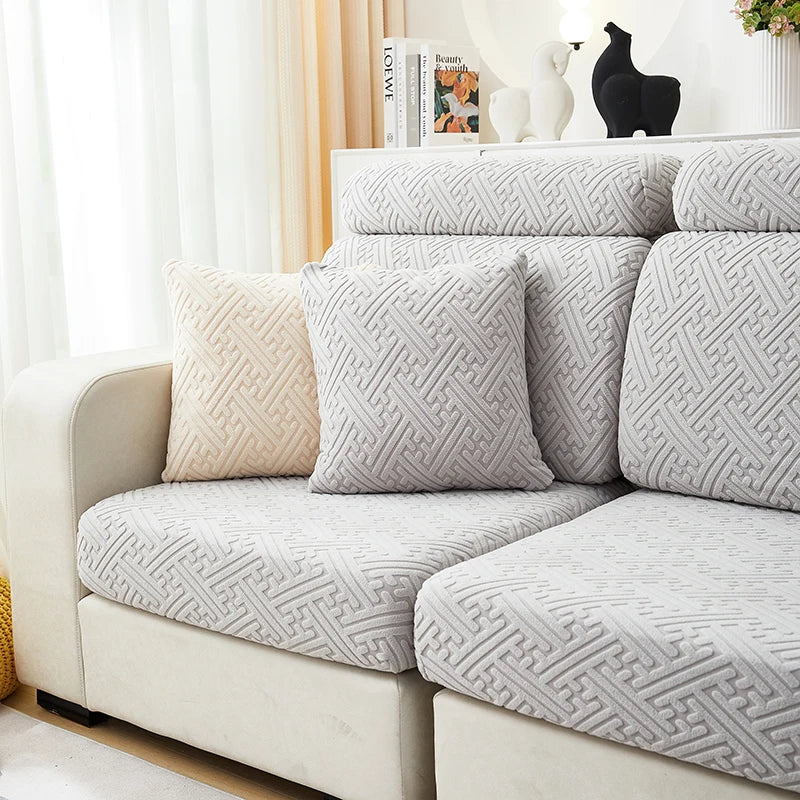 Thicken Sofa Covers Jacquard Sofa Seat Cushion Cover is perfect for living room furniture protection while adding a touch of style. These durable stretch covers are made of a polyester and spandex blend, providing a snug fit while ensuring the material won't easily tear or stretch. The jacquard design adds a luxurious look to any living room.