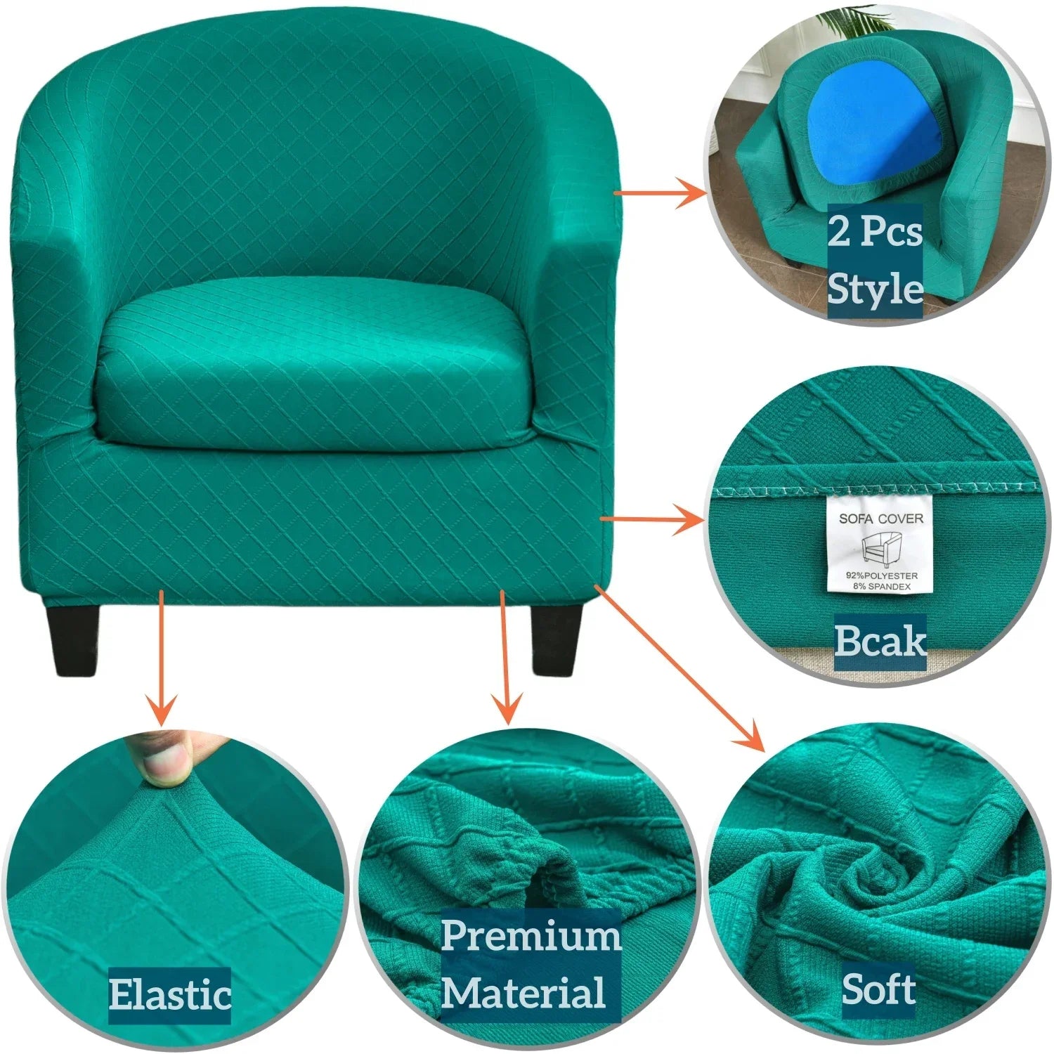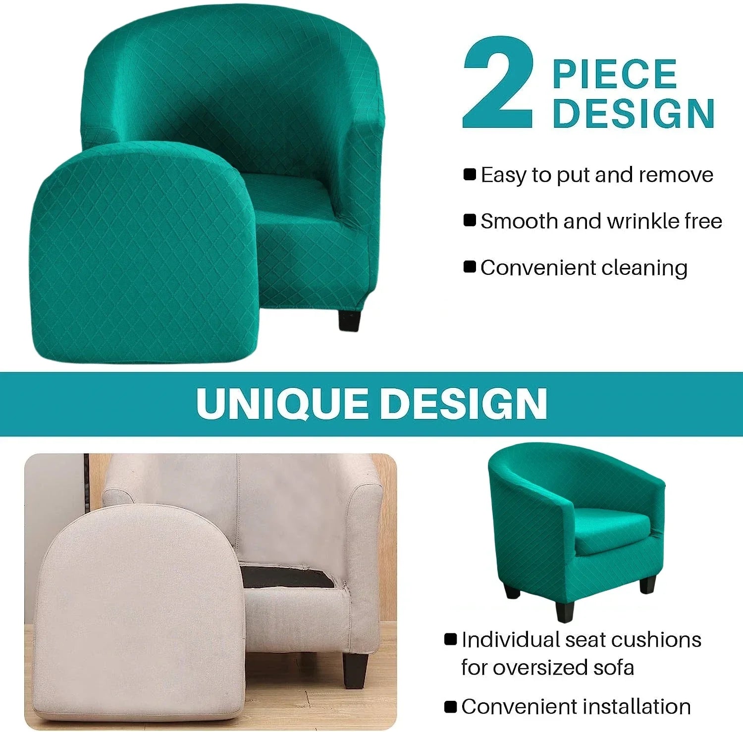 • 2Pcs Tub Chair Cover Set : Beacon Pet innovative 2 piece tub chair cover is crafted from luxurious Jacquard fabric,feature soft,rich, comfortable and wrinkle-free.With the design of the two piece, including 1 piece of base cover and 1 piece of the cushion cover, no need to worry about foam sticks popping out.