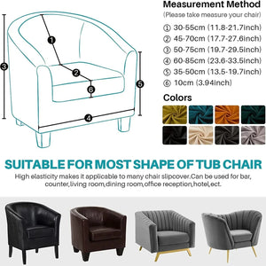 • Perfect Fit: This club chair cover with great elasticity,it fits a wide range of most club chair/tub chair /armchairs/barrel chair.Fit Chair Height:65-72cm/25.6"-28.3";Chair Width:65-75cm/25.6"-29.5";Seat width:65-75cm/25.6"-29.5";Cushion Width:45-52cm/17.7"-20.5".Pls measure your armchair before buying to make best fit.