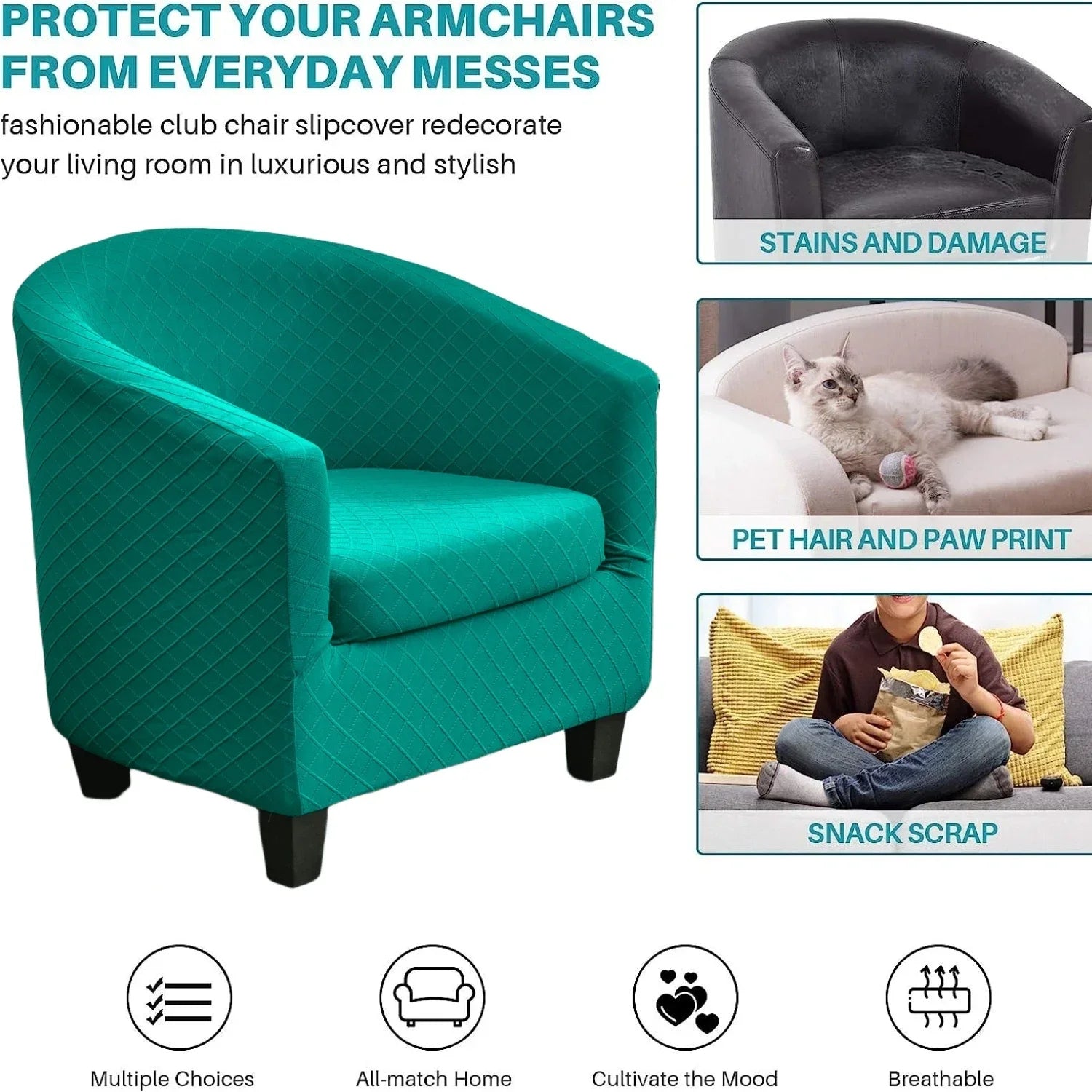 • High Stretch :Our sofa covers are made of 92% Polyester/8% Spandex Fabric. High elasticity, extra soft, durable and long lasting.Our slipcovers fits for more than 90% Club Chair. It can protect your furniturn from spills, stains and scratches. Great for homes with children and pet.