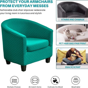 This 2 piece stretch jacquard slipcover is specifically designed for tub club chairs. Made from non-slip material, it provides a snug fit and easy maintenance. Transform your living room with this elegant and functional armchair cover.