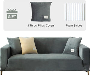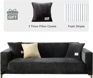 Home Upgraded Thick Velvet Sofa Covers Couch Cover for 3 Seater High Stretch and Non-Slip Sofa Slipcovers for Living Room