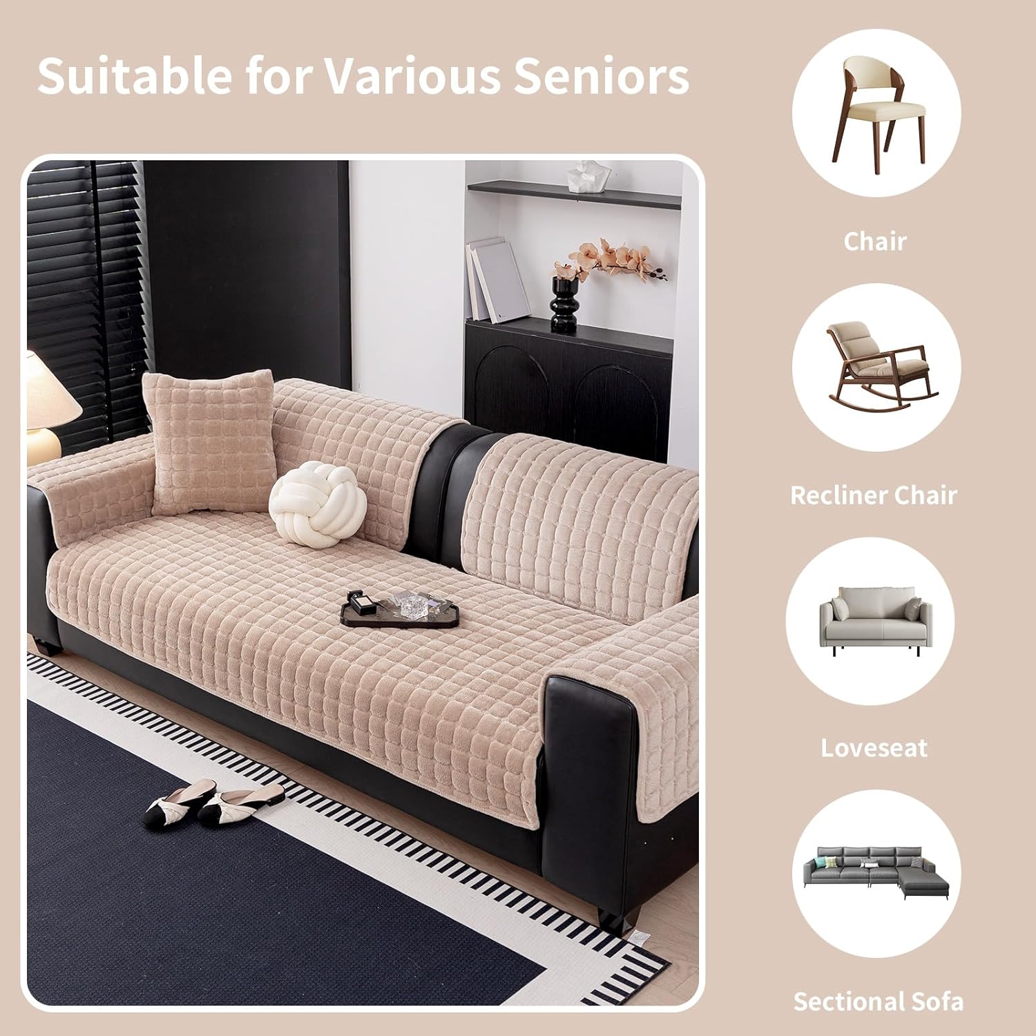 • [Non-Slip & All-Season Protection] The back is equipped with anti-slip silicone particles to ensure better stability. Anti slip sofa slipcovers is warm yet breathable, suitable for year-round use, and protects your sofa from dirt and scratches throughout the year.