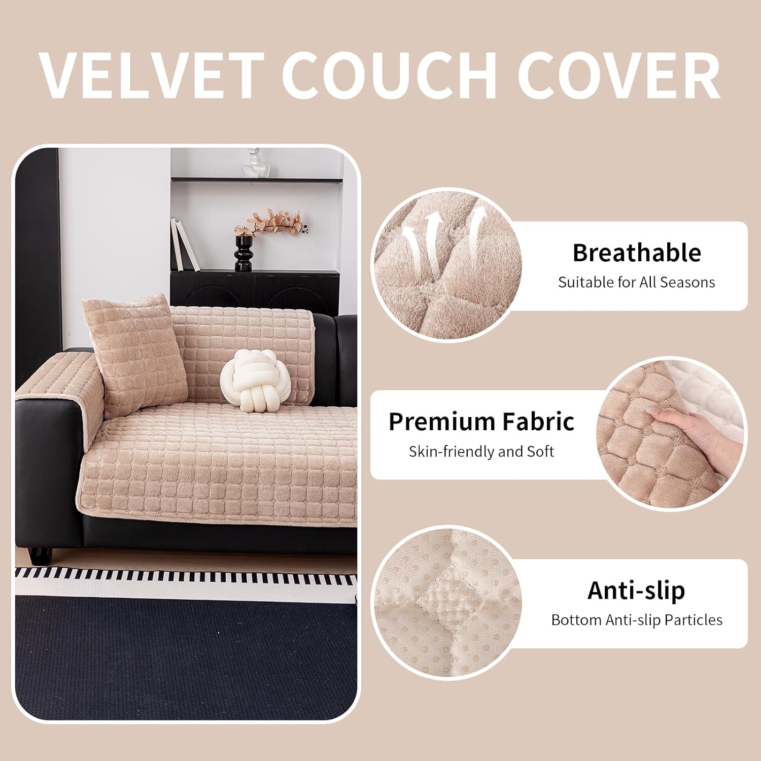 Velvet Couch Cover Sectional Sofa Cover, Anti Slip Sofa Slipcovers for Cushion Couch Sofa L Shaped Recliner Covers for Pets Kids