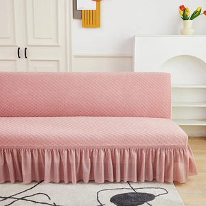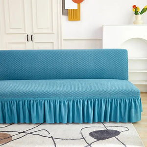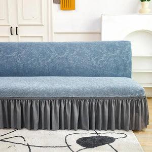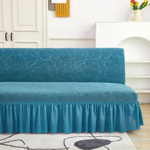 Velvet Jacquard Flower Grid All Without Armless Elastic Sofa Bed Covers with Skirt Slipcover Fitted Couch Bed Cover