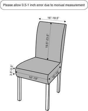 • Fit size: stretch chair covers fit well for chair height 19.5-23.5" and chair back width 16-18.5" and chair seat width and length 16-19", thickness 3.5-6", Kindly measure before ordering.