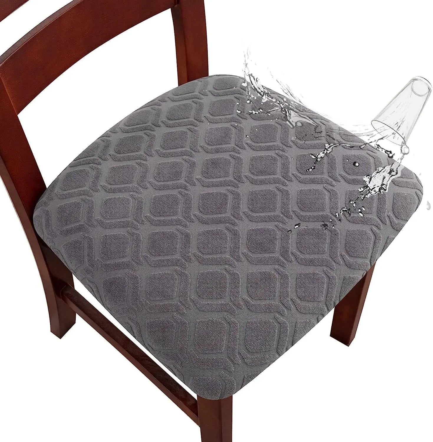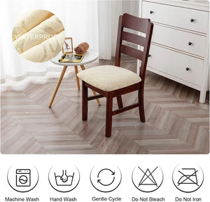 Protect your dining chairs with our Waterproof Chair Seat Covers. Made with a jacquard fabric, these slipcovers are stretchy and fit most chair sizes. Keep your chairs clean and elegant with these easy-to-use covers. Perfect for any dining room, they provide both style and functionality.