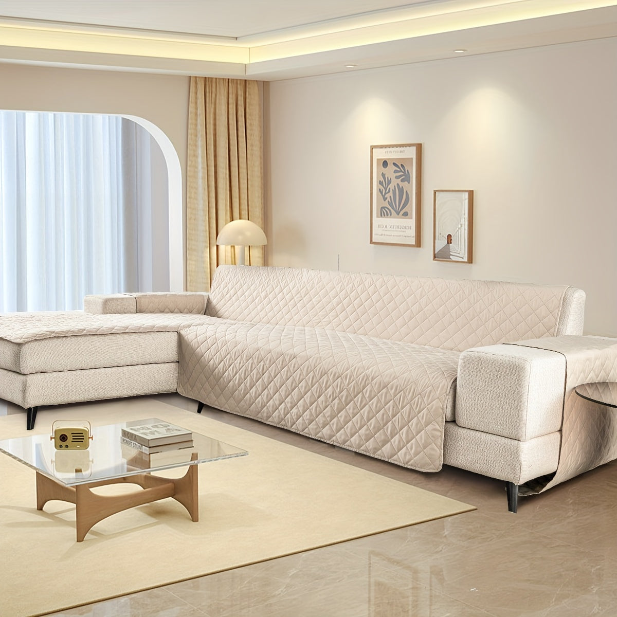 Protect your sofa from spills and pet hair with our Waterproof Sofa Cover. Designed for L-shaped sofas, this slipcover is a must-have for any pet owner. Keep your furniture looking like new and add a stylish touch to your home decor with this easy-to-use and durable sofa protective cove Enhance your home decor and safeguard your sofa with our Waterproof Sofa Cover, perfect for pet owners. Made for L-shaped sofas, this durable slipcover prevents spills and pet hair from affecting your furniture. Maintain a pristine look and protect your investment.r.
